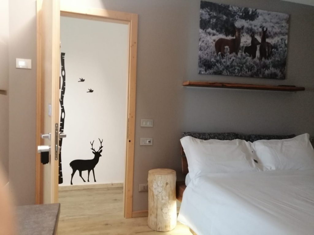 Camera con tre posti letto, situata a piano terra, attrezzata con angolo cucina per colazioni private compresa di lavandino, frigobar, macchina per il caffe, bollitore e microonde.